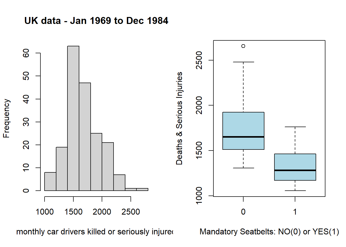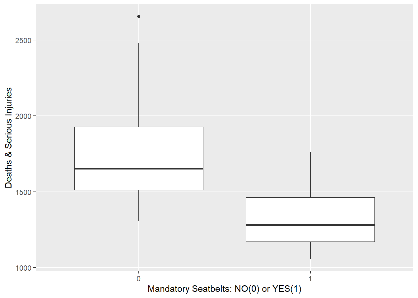 labs(x = "Mandatory Seatbelts: NO(0) or YES(1)",