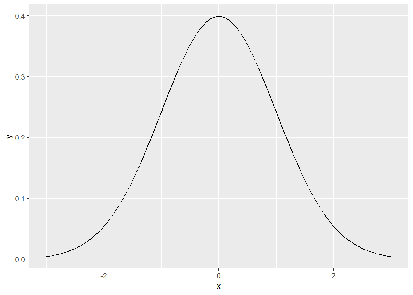 stat_function(fun = dnorm, n = 100, args = list(mean = 0, sd = 1))