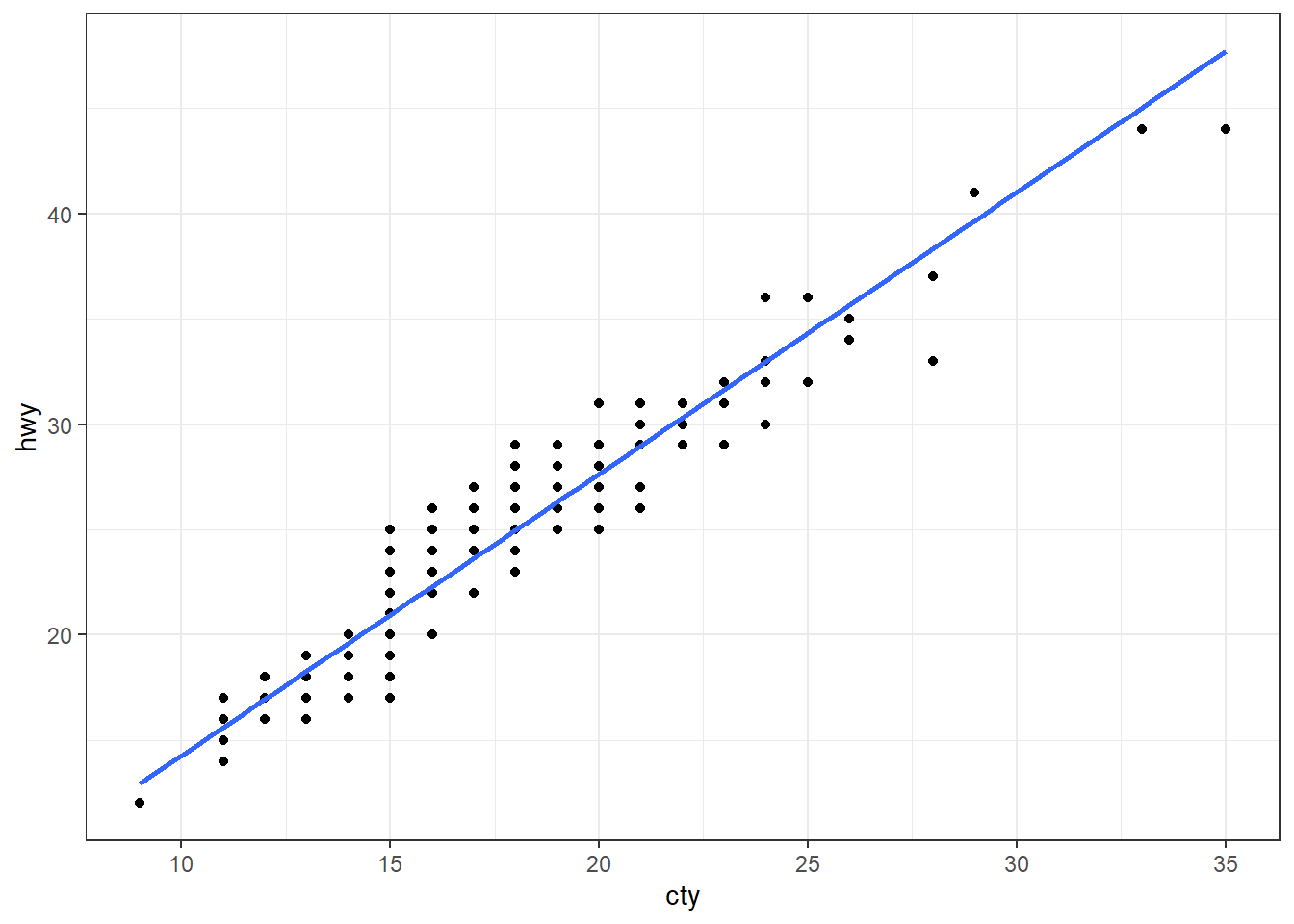 g <- ggplot(mpg, aes(cty, hwy)) +