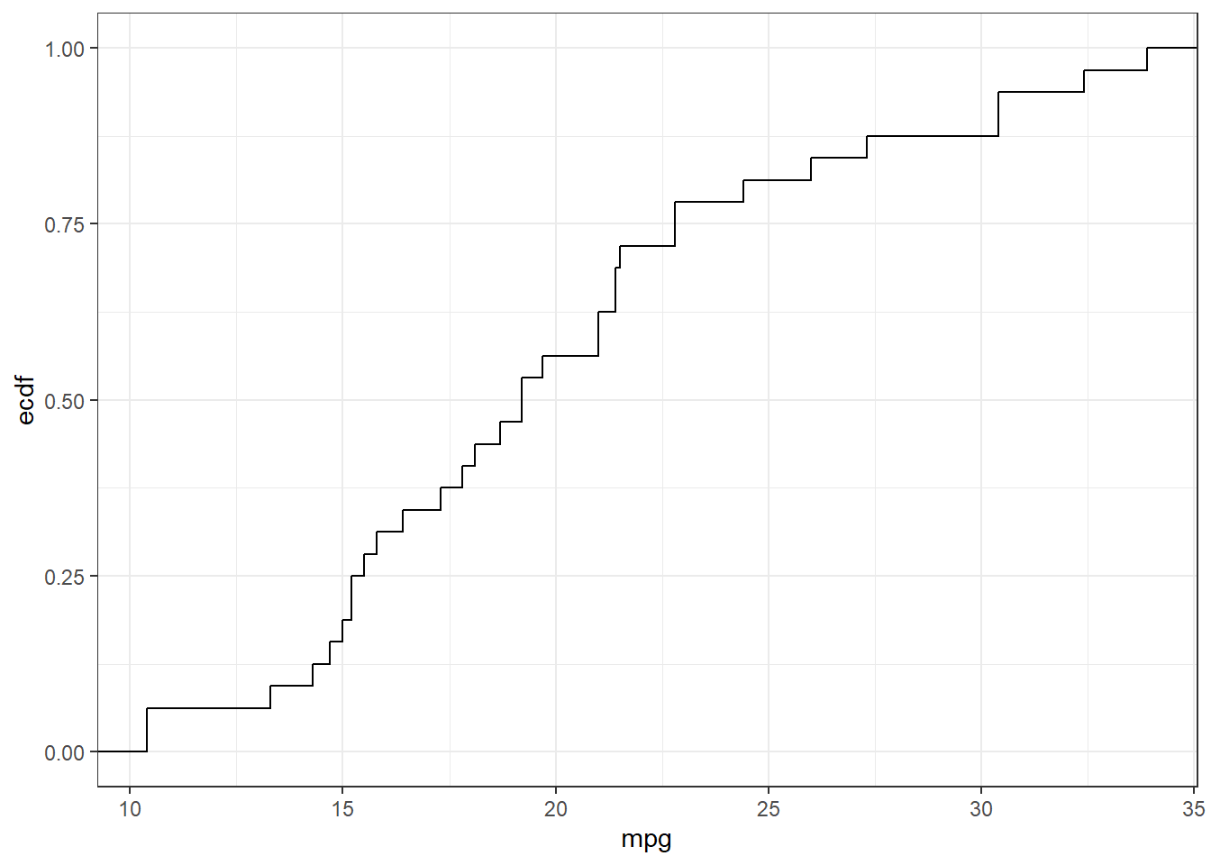 ggplot(mtcars, aes(mpg))+stat_ecdf() # empirical distribution