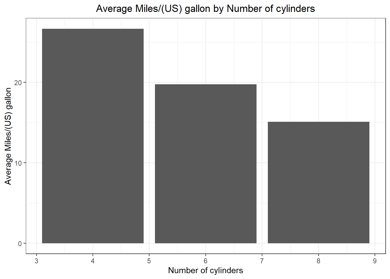 labs(x = "Number of cylinders", y = "Average Miles/(US) gallon") +