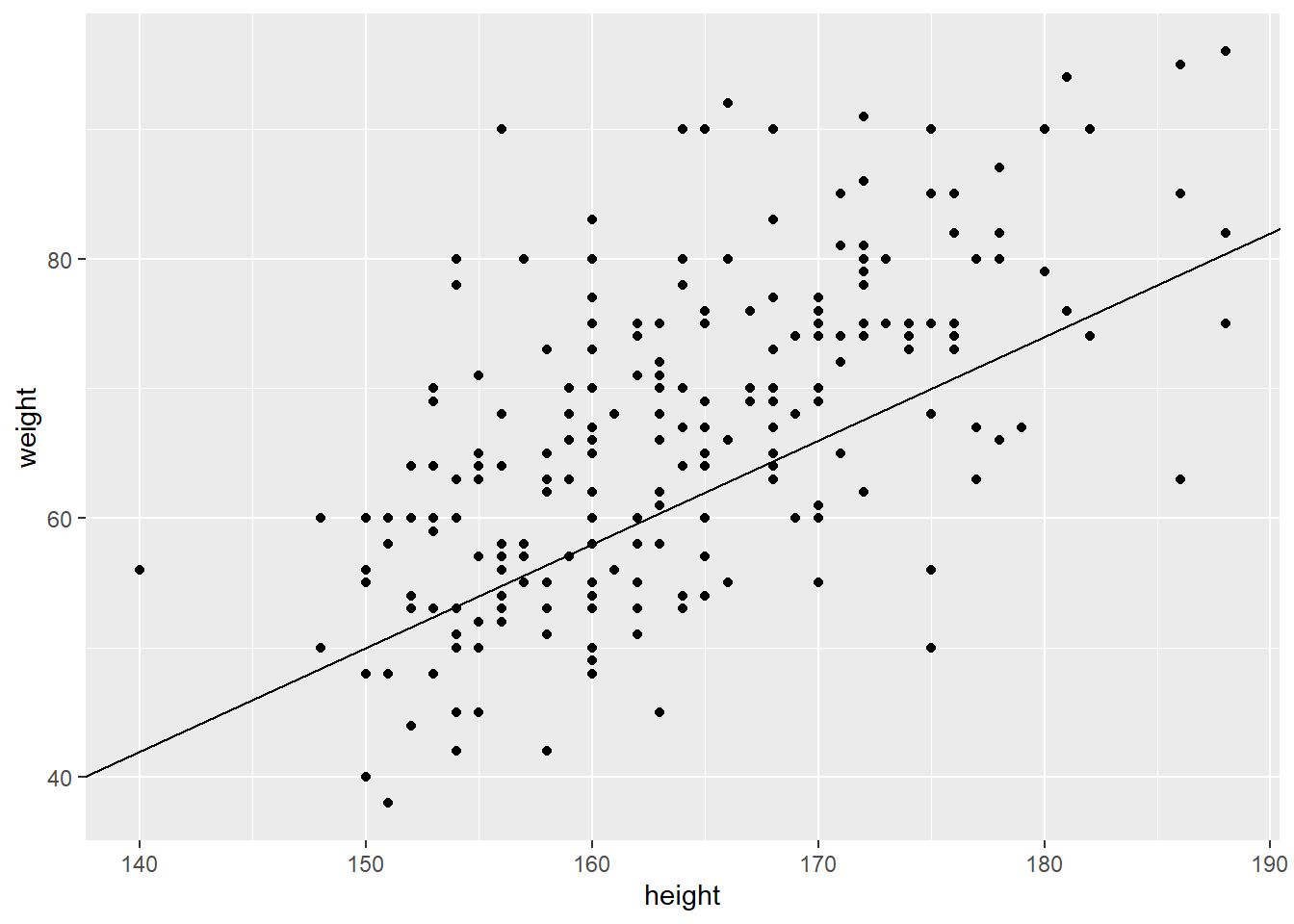 geom_abline(intercept = -70, slope = 0.8) # add line (note this is not the best fit, just a line with arbitrary values)