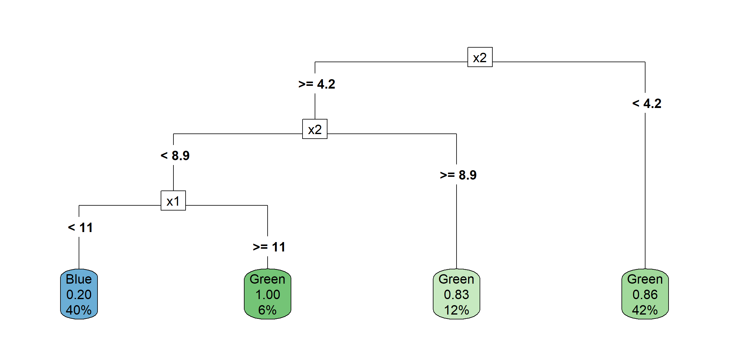 They make predictions by partitioning the predictor space into a number of simple regions, and making a constant prediction within each region. The set of splitting rules can be summarised in a tree. “Stand alone” tree models are rarely particularly accurate, but they form the basis for more accurate (and complex) methods like random forests and boosting.